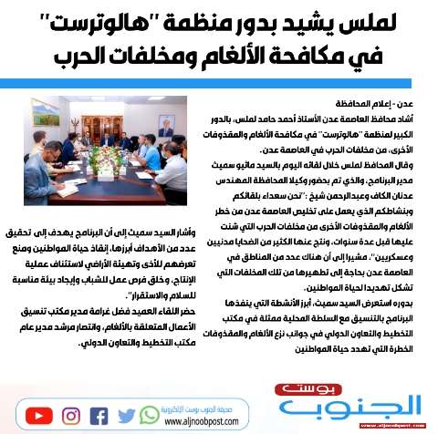 لملس يشيد بدور منظمة "هالوترست" في مكافحة الألغام ومخلفات الحرب