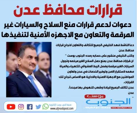 دعا الناشط فهد الخليفي الجميع للتكاتف والتعاون لانجاح قرارات محافظ عدن
