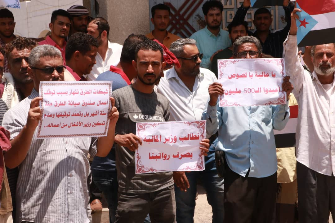 وناشد المحتجون كافة الجهات ذات العلاقة بصرف مرتباتهم وإلغاء تجميد ميزانية مشاريع الصيانة والتأهيل للطرقات الرئيسية في محافظة عدن والمحافظات الأخرى لاستعادة الدور الريادي للأعمال والمشاريع التي ينفذها صندوق صيانة الطرق للحفاظ على سلامة شبكة الطرق من التلف