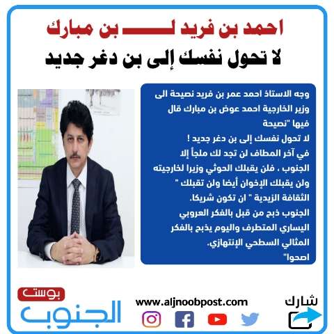 احمد بن فريد لــــــــ بن مبارك : لا تحول نفسك إلى بن دغر جديد