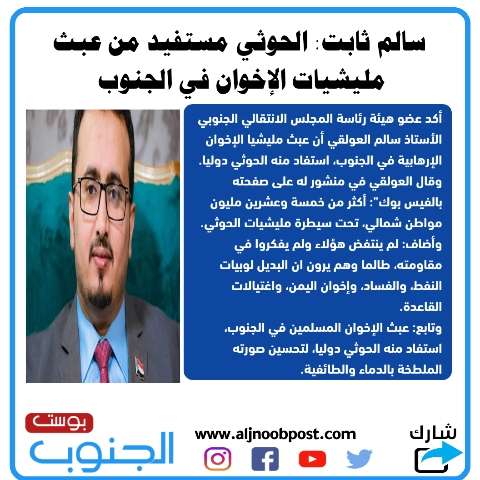 ‏سالم ثابت: الحوثي مستفيد من عبث مليشيات الإخوان في الجنوب ‎