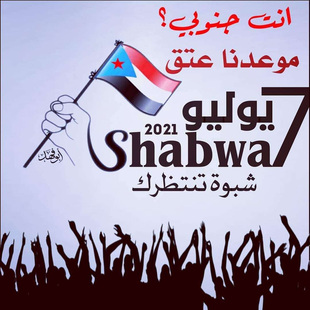 إلى أبناء مديرية عتق والمواطنين المقيمين فيها من أبناء الجنوب العربي جميعا" تدعوكم رئاسة قيادة إنتقالي عتق بشبوة إلى حضور الفعالية الجماهيرية السلمية الكبرى التي ستقام يوم غدا" الأربعاء الموافق 7/7 داخل مدينة عتق الساعة التاسعة والنصف صباحا" في ساحة الحرية والإستقلال ( جولة العسل ) وتؤكد قيادة إنتقالي عتق بأن الفعالية الجماهيرية السلمية قائمة على موعدها المحدد
