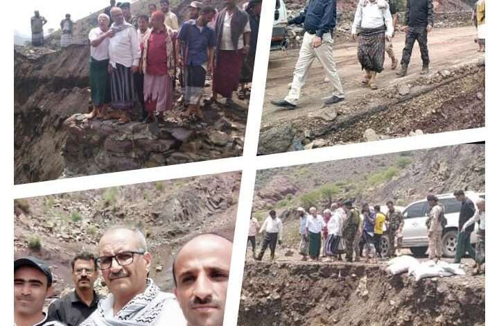 الجعدي يطلع على حجم الأضرار التي خلفتها #السيول في نقيل الربض بالضالع