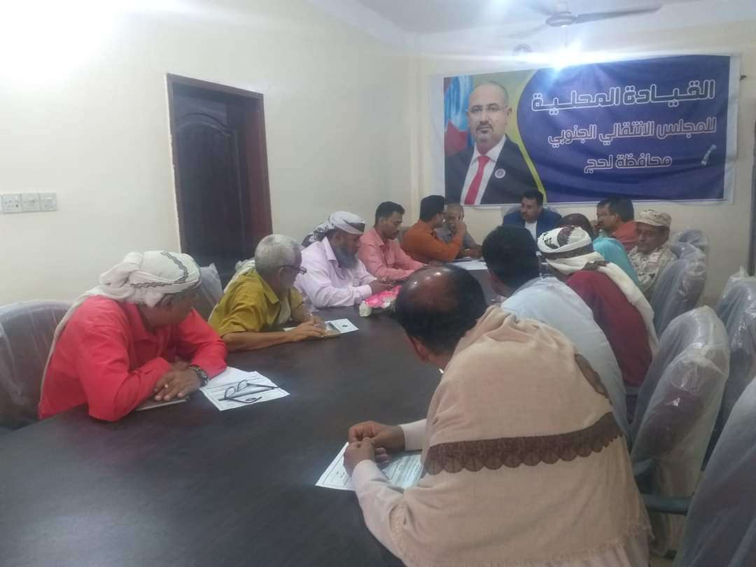عقدت الهيئة التنفيذية للقيادة المحلية للمجلس الانتقالي الجنوبي بمحافظة لحج اليوم الثلاثاء اجتماعها الدوري برئاسة المحامي رمزي الشعيبي رئيس الهيئة .