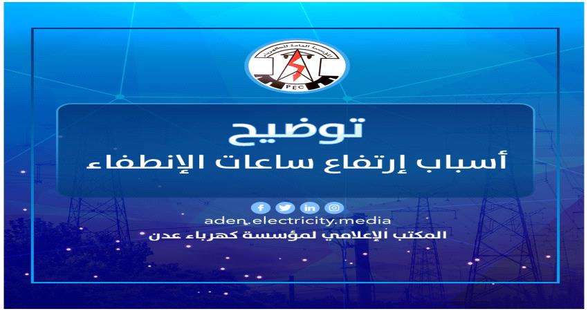 اوضحت المؤسسة العامة لكهرباء عدن للأخوة المواطنين بأن أسباب إرتفاع ساعات الإنطفاء للتيار الكهربائي منذ صباح اليوم كانت جراء تأخر وصول ناقلات الوقود لمحطات التوليد، حيث أن عدد من المحطات قد خرجت فعلياً عن الخدمة بسبب نفاد الوقود صباحاً، مما تسبب ذلك بإرتفاع ساعات الانطفاء.