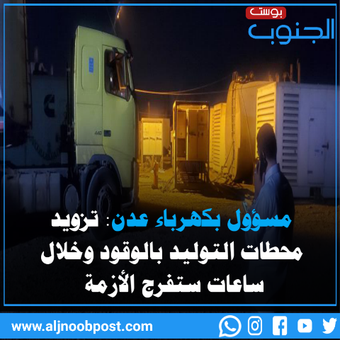 عاجل مسؤول بكهرباء عدن: تزويد محطات التوليد بالوقود وخلال ساعات ستفرج الأزمة
