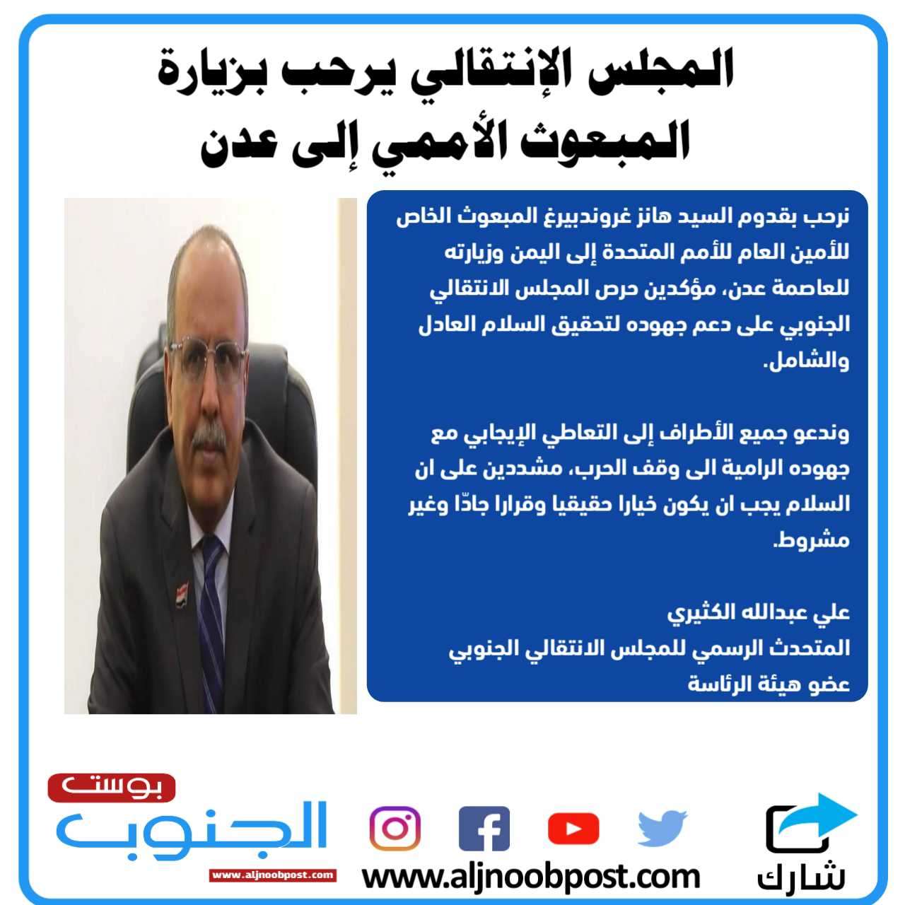 المجلس الإنتقالي يرحب بزيارة المبعوث الأممي إلى عدن