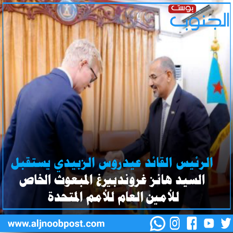 استقبل الرئيس عيدروس قاسم الزُبيدي، رئيس المجلس الانتقالي الجنوبي القائد الأعلى للقوات المسلحة الجنوبية، اليوم الثلاثاء، في مقر رئاسة المجلس الانتقالي بالعاصمة عدن، المبعوث الخاص لأمين عام الأمم المتحدة الى اليمن، سعادة هانز غروندبرغ.