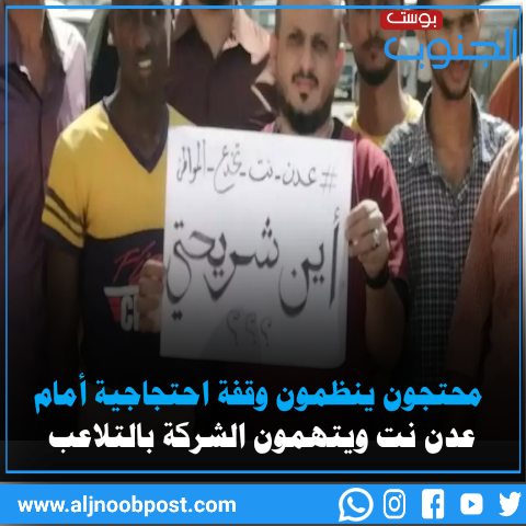 مواطنون ينظمون وقفة احتجاجية أمام عدن نت ويتهمون الشركة بالتلاعب