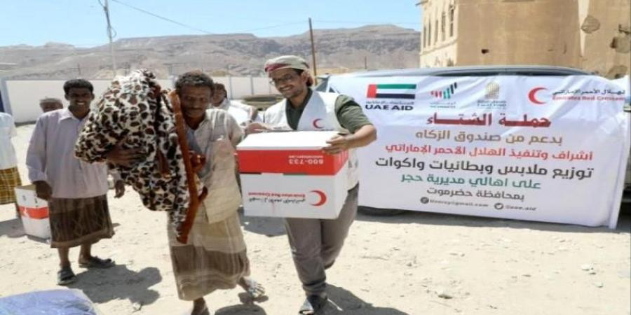حضرموت.. هلال الامارات يساعد اهالي حجر لمواجهة اعباء الشتاء