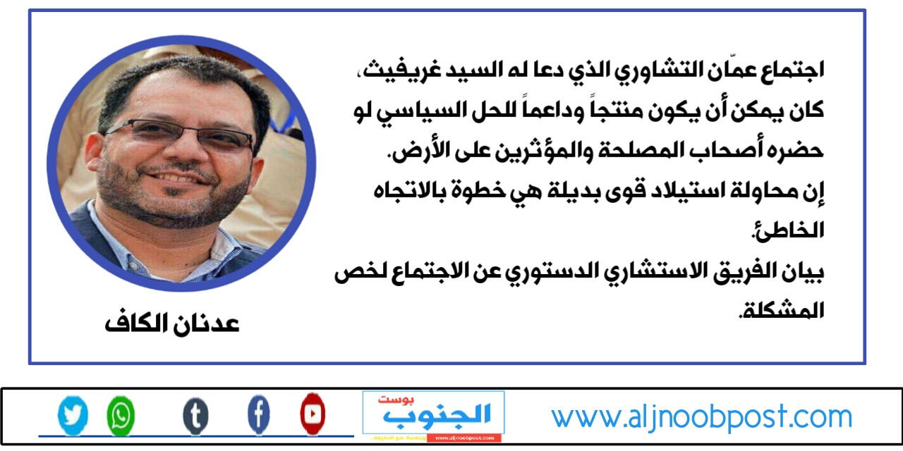 وعلق الكاف على اجتماع عمّان التشاوري الذي دعا له السيد غريفيث من خلال تغريدة له رصدها الجنوب بوست قال فيها " اجتماع عمّان التشاوري الذي دعا له السيد غريفيث، كان يمكن أن يكون منتجاً وداعماً للحل السياسي لو حضره أصحاب المصلحة والمؤثرين على الأرض.