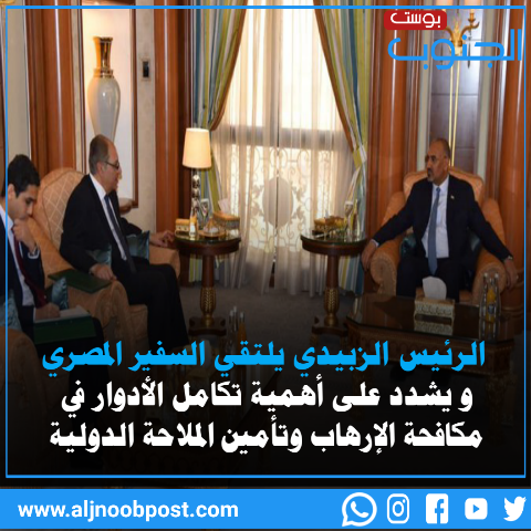 الرئيس الزبيدي يلتقي السفير المصري و يشدد على أهمية تكامل الأدوار في مكافحة الإرهاب وتأمين الملاحة الدولية