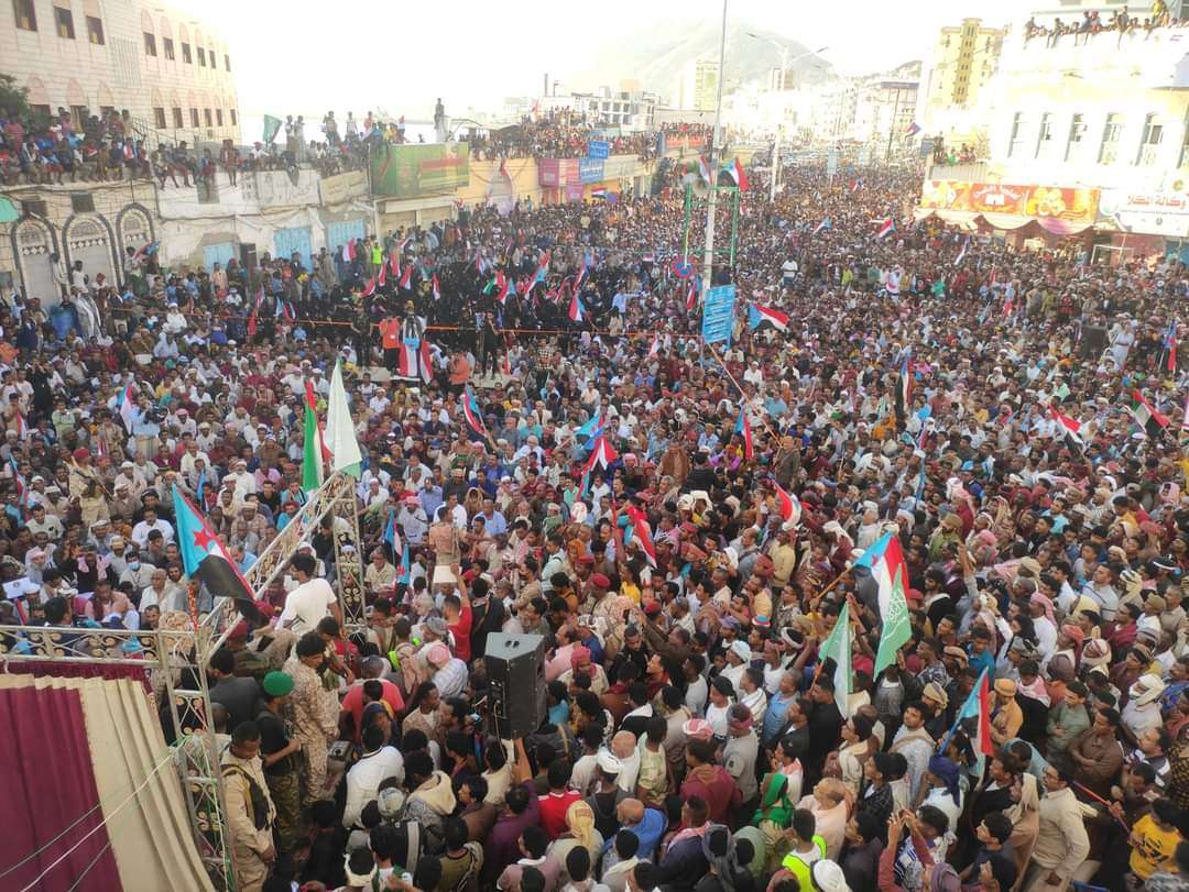 - يجدد المحتشدون تفويضهم للمجلس الانتقالي الجنوبي ممثلا بالرئيس القائد عيدروس الزُبيدي للمضي قدما صوب تحقيق آمال وتطلعات شعب الجنوب الحر في وطن آمن مستقر في دولة جنوبية فيدرالية مستقلة ذات سيادة تعز ولا تذل تجمع ولا تفرق، تندمج في بوتقة النسيج القومي العربي وتكون رأس حربة وسياجاً منيعًا لصد أية تدخلات تستهدف المستقبل السياسي والاقتصادي للمنطقة.