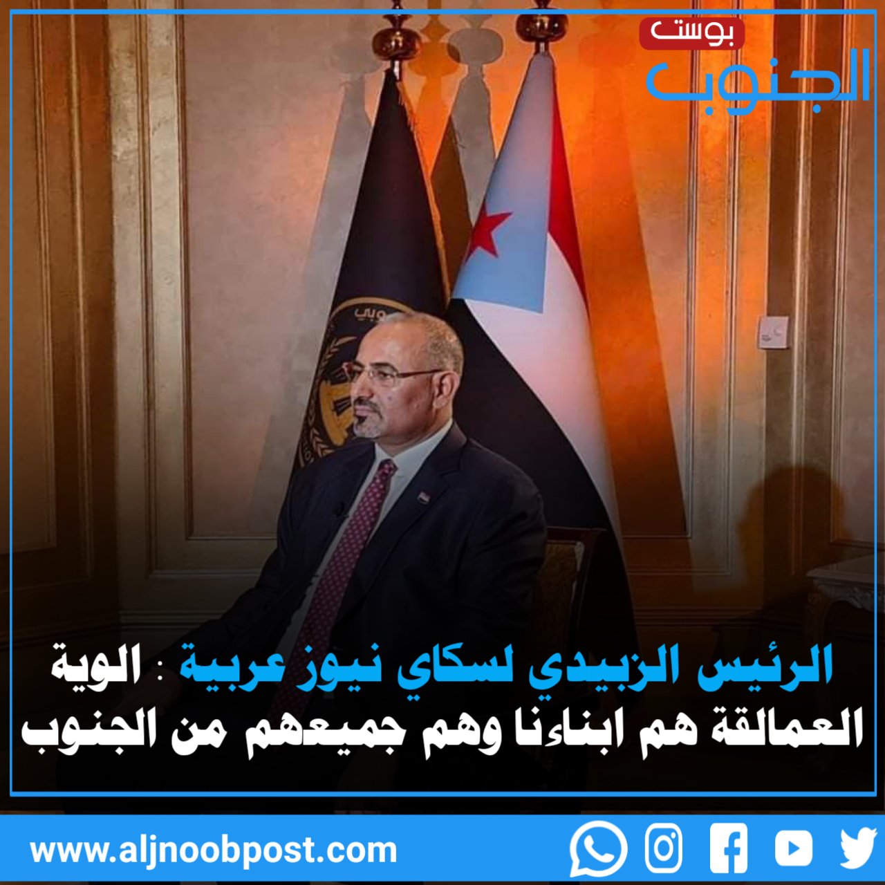 الرئيس الزبيدي لسكاي نيوز عربية : الوية العمالقة هم ابناءنا وهم جميعهم من الجنوب