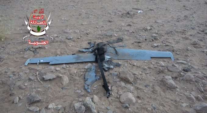دفاعات ألوية العمالقة الجنوبية تسقط طائرة حوثية مفخخة في حريب