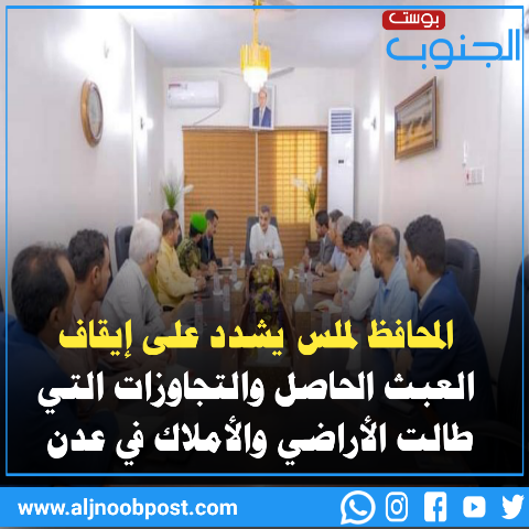 المحافظ لملس يشدد على إيقاف العبث الحاصل والتجاوزات التي طالت الأراضي والأملاك في عدن