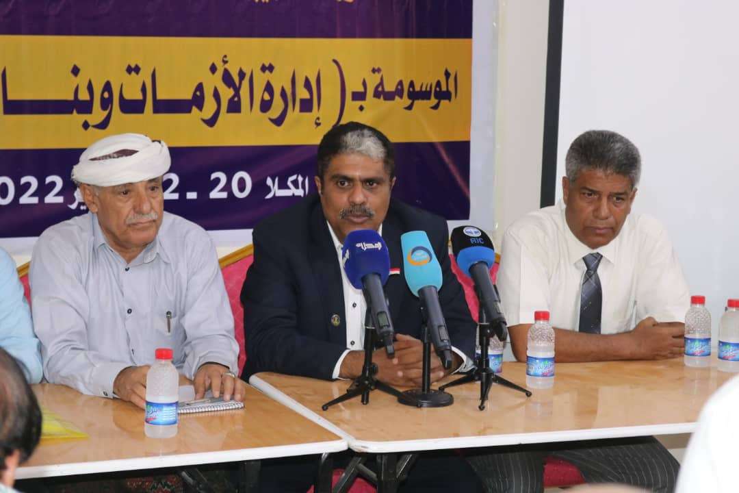 نظمت لجنة الدراسات والبحوث والتدريب بالجمعية الوطنية للمجلس الانتقالي الجنوبي، بمدينة المكلا، اليوم الأحد، دورة تدريبية مكثفة لأعضاء الجمعية الوطنية في محافظات حضرموت وشبوه والمهرة، في مجال إدارة الأزمات وبناء السلام