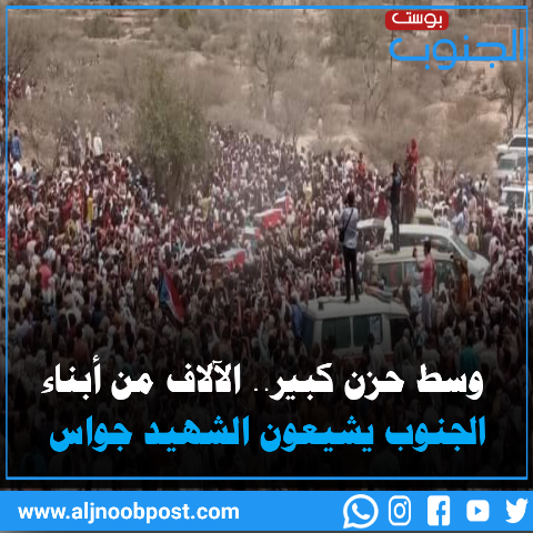 انطلق موكب تشييع جثمان الشهيد جواس، ورفاقه، إلى مسقط رأسه في منطقة حبيل السبحة، بمديرية حبيل جبر ردفان، وسط حالة حزن عمت الجميع.