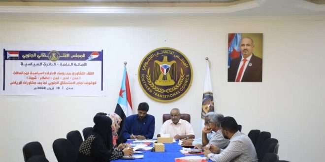 الدائرة السياسية بأمانة الانتقالي تعقد لقاءً تشاورياً مع مديري الإدارات في المحافظات