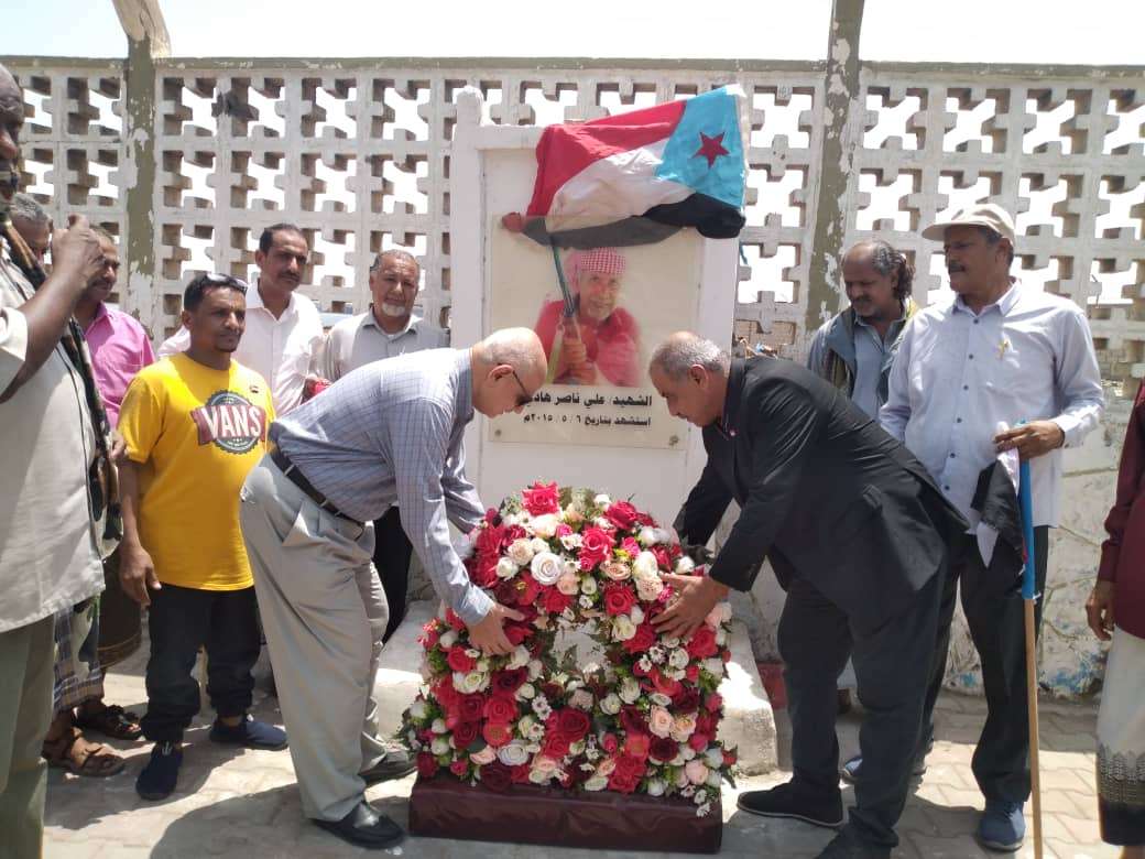 وقام العميد طيار ناصر السعدي عضو هيئة رئاسة المجلس الانتقالي الجنوبي بمعية الأستاذ عصام عبده علي القائم بمهام رئيس تنفيذية انتقالي العاصمة عدن، بوضع إكليل من الزهور في موقع استشهاده بمنطقة حجيف بمديرية التواهي.