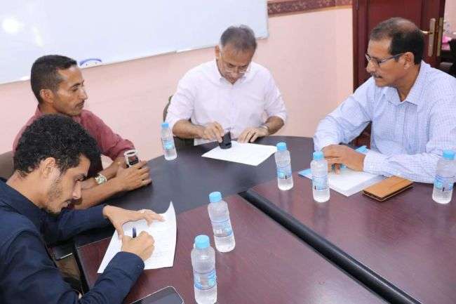 وفي حفل توقيع اتفاقية تدشين العمل والذي مثل فيها السلطة المحلية في المديرية مدير المديرية الاستاذ عبدالرحيم جاوي ومن جانب وزارة الأشغال الاخ محمد فهد مدير الوحدة التنفيذية للمشاريع الممولة دوليا ومن الهايبتات الدكتور محمد عيدروس زين مدير البرنامج في عدن والمقاول المنفذ لأعمال المشروع