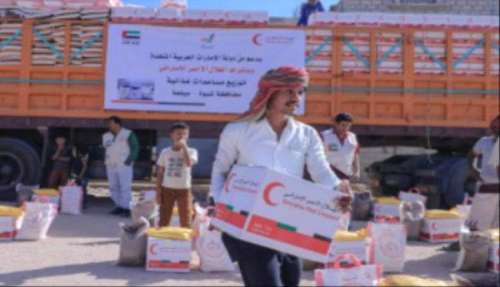 سيرت هيئة الهلال الأحمر الإماراتي قافلة مساعدات غذائية إلى أهالي مديرية جردان في محافظة شبوة تحوي 85 طنًا و600 كيلو غرام من المواد الغذائية المتنوعة.