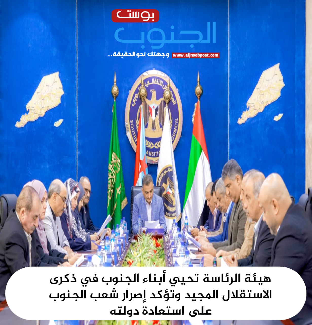 هيئة الرئاسة تحيي أبناء الجنوب في ذكرى الاستقلال المجيد وتؤكد إصرار شعب الجنوب على استعادة دولته