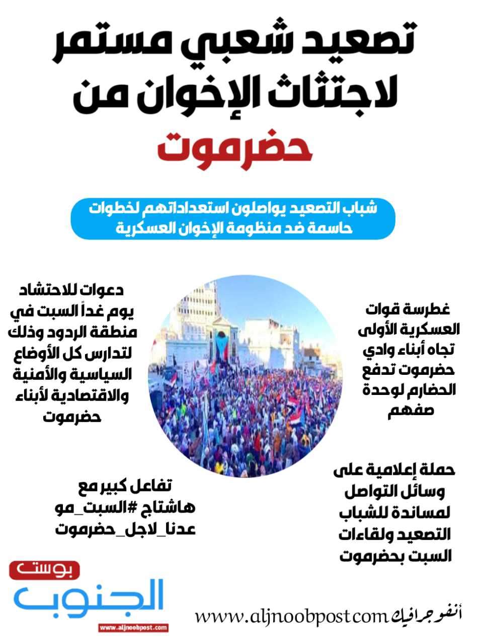 انفوجرافيك تصعيد شعبي مستمر لاجتثاث الإخوان من حضرموت