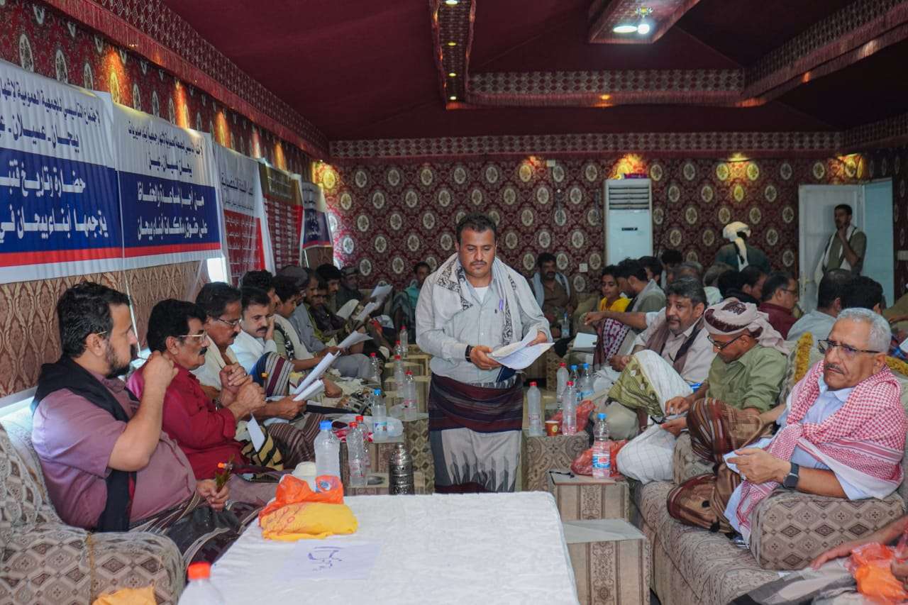 وعضوية كل من: أحمد صالح حشوان، غازي صالح المحسني، حمود عبدوه المساح، صالح علي حرقدان، د.علي احمد المحضار، العبد محمد شملان، فواز زبن الله فهيد، عبدالسلام عبدالله علي.