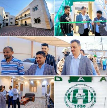 افتتح وزير الدولة، محافظ العاصمة عدن، اليوم الأحد، مشروع بناء وتجهيز وتأثيث المبنى الإداري للسلطة المحلية، ومشروع بناء مدرجات إضافية لملعب شهداء نادي وحدة عدن لكرة القدم بتمويل محلي وتكلفة مالية بلغت 566 مليوناً، و523 ألفاً و381 ريال.