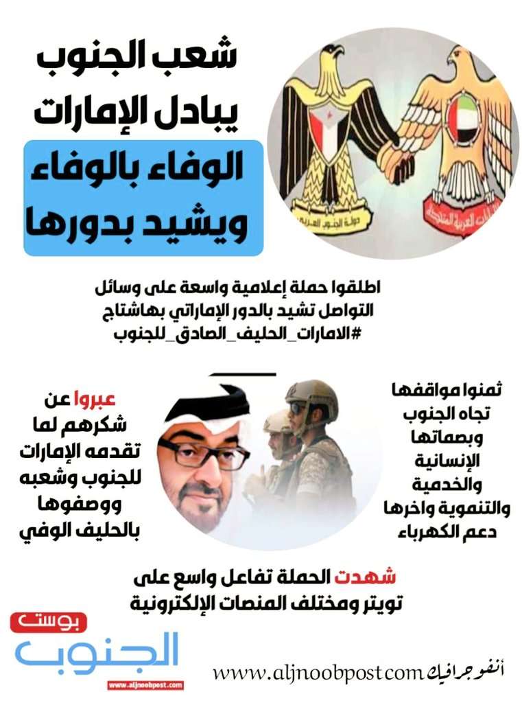 انفوجرافيك شعب الجنوب يبادل الإمارات الوفاء بالوفاء ويشيد بدورها