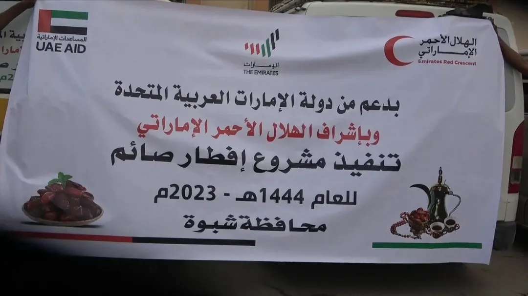 بدعم من دولة الإمارات العربية المتحدة إستهلت هيئة الهلال الأحمر الإماراتي أول مشاريعها الرمضانية لهذا العام بتدشن مشروع إفطار صائم في مدينة عتق عاصمة محافظة شبوة.