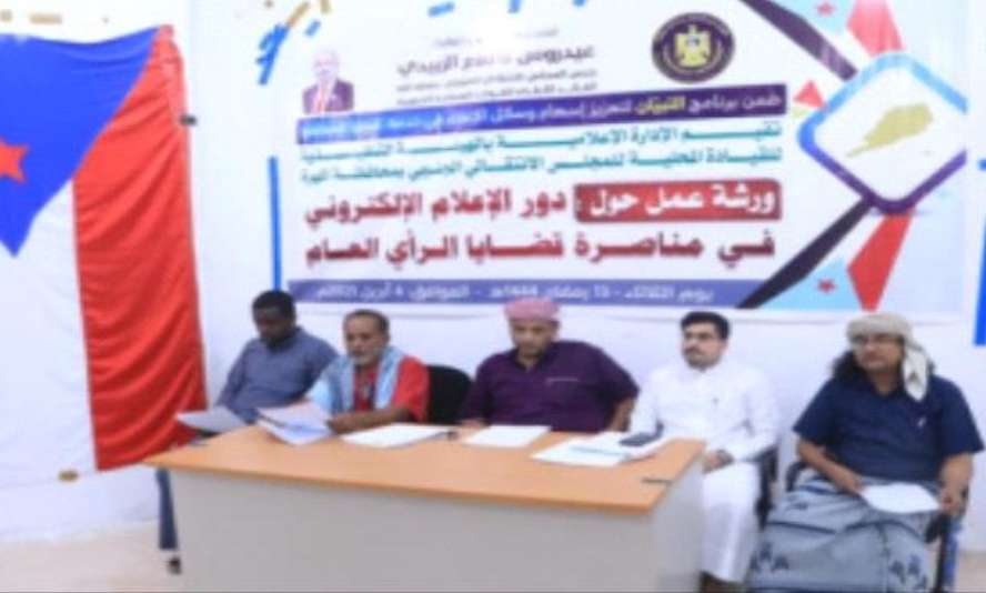 نظمت الإدارة الإعلامية للهيئة التنفيذية بالمجلس الانتقالي الجنوبي في محافظة المهرة، أمس الثلاثاء، ورشة عمل حول "دور الإعلام الإلكتروني في مناصرة قضايا الرأي العام"، لعدد من الكوادر الإعلامية والناشطين في مديرية الغيضة.