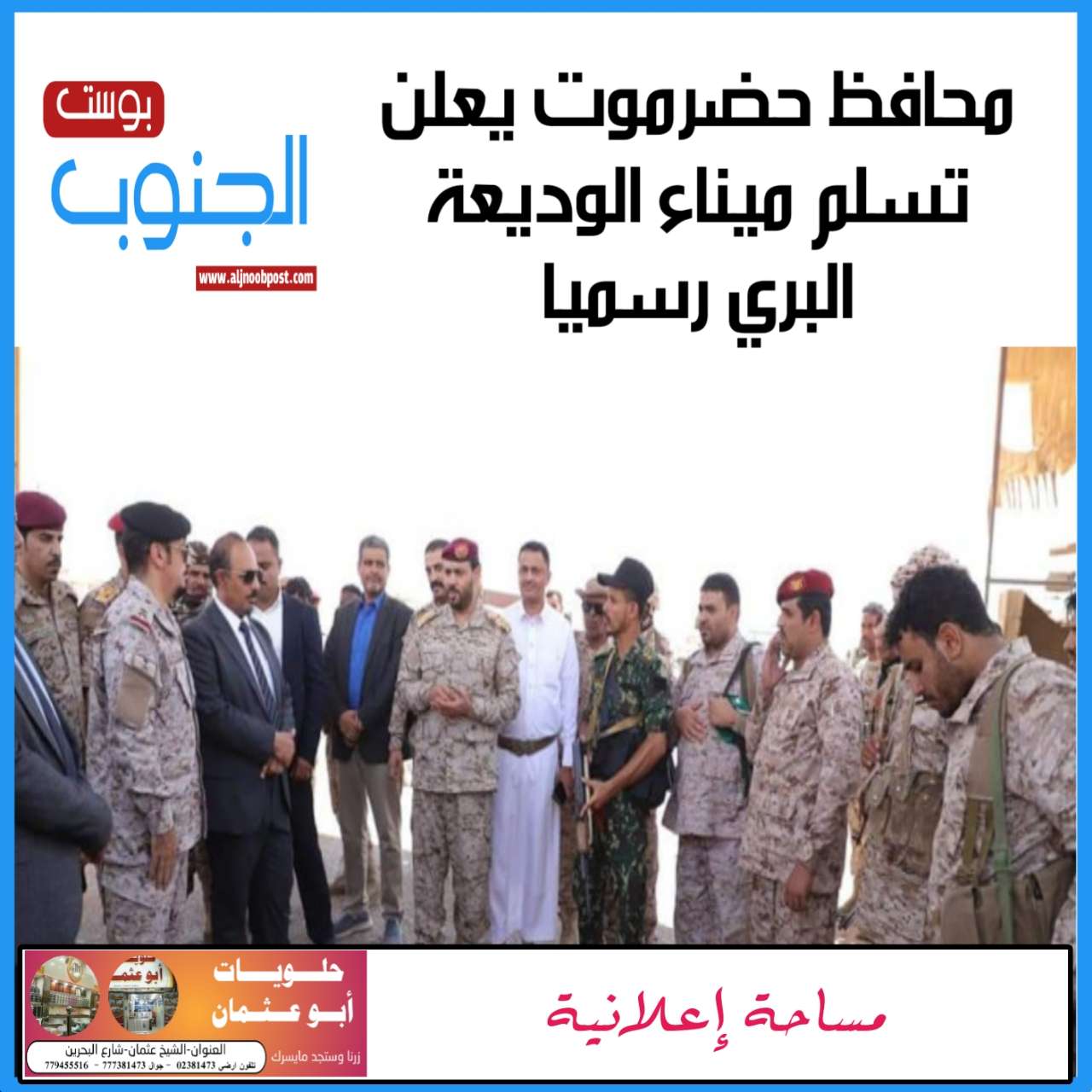 محافظ حضرموت يعلن تسلم ميناء الوديعة البري رسميا