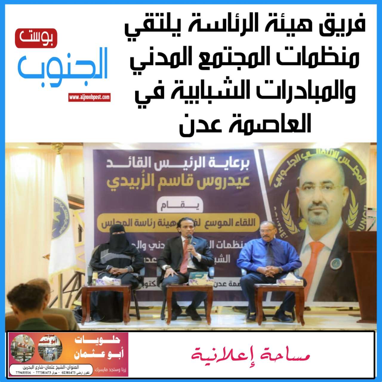 فريق هيئة الرئاسة يلتقي منظمات المجتمع المدني والمبادرات الشبابية في العاصمة عدن