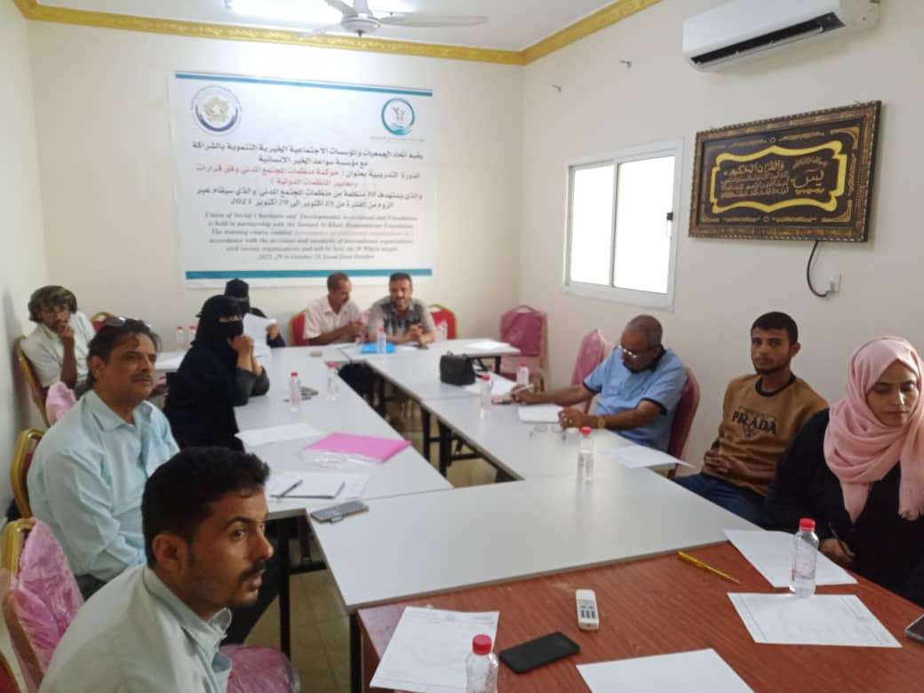 عقد اتحاد الجمعيات والمؤسسات الاجتماعية الخيرية التنموية بالشراكة مع مؤسسة سواعد الخير الإنسانية ومن خلال إدارة التدريب والتأهيل في الإتحاد دورة تدريبية بعنوان (حوكمة منظمات المجتمع المدني وفق قرارات ومعايير المنظمات الدولية) على مدى يومين إبتدات في يوم السبت 28أكتوبر. وأنتهت في يوم الأحد الموافق 29أكتوبر 2023م ، وقد كانت الدورة على برنامج الزوم حيث حاضر فيها المدرب فؤاد سعيد من الخارج، علمًا بأن الدورة قد أستهدفت 30 منظمة من منظمات المجتمع المدني والذي شاركت فيها المنظمات من خلال مواقعها في منظماتها كما شارك كوادر الاتحاد حضور الدورة من خلال حضورهم إلى قاعة التدريب في الاتحاد بشكل جماعي.