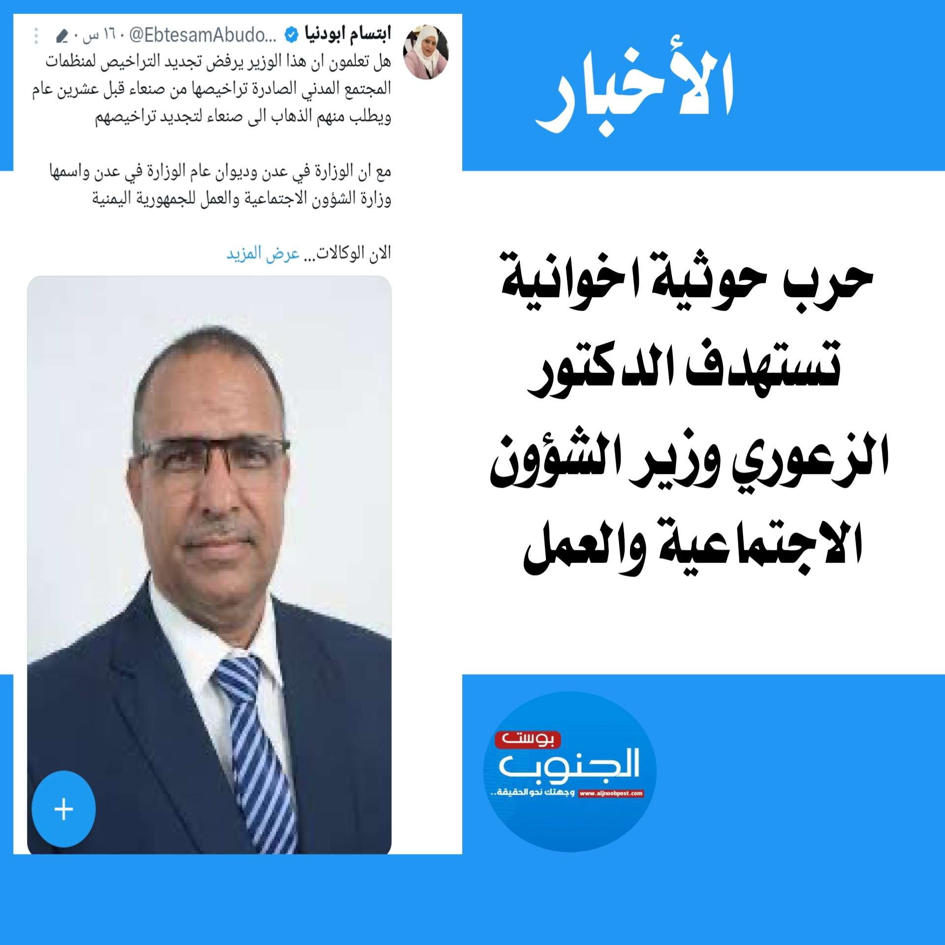 حرب حوثية اخوانية تستهدف الدكتور الزعوري وزير الشؤون الاجتماعية والعمل