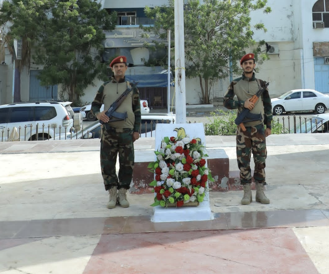 حيث قام الأستاذ عبده علي النقيب، مساعد الأمين العام للأمانة العامة، بوضع إكليل من الزهور أمام النصب التذكاري للجندي المجهول، والوقوف دقيقة حداد، وقراءة سورة الفاتحة على أرواح شهداء الجنوب، داعياً المولى عز وجل بأن يتغمدهم بواسع رحمته، وأن يسكنهم الجنة مع الأنبياء والصديقين.