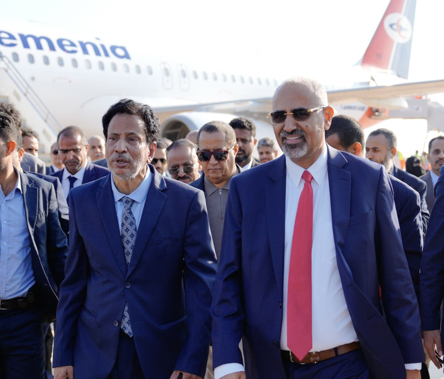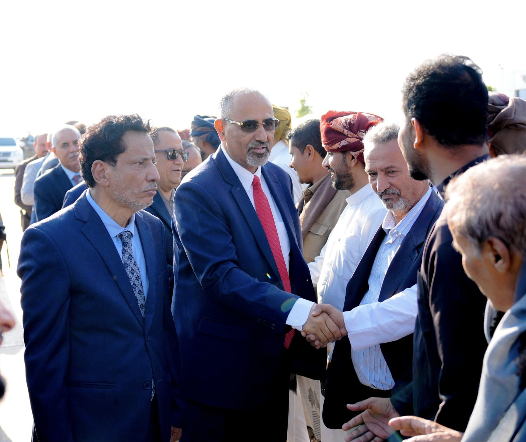 وكان في استقبال الرئيس الزُبيدي ومرافقيه لدى وصولهم مطار الغيضة، محافظ محافظة المهرة محمد علي ياسر، وعضوا هيئة رئاسة المجلس الانتقالي السلطان عبدالله بن عفرار، الدكتور سالم القميري، ورئيس هيئة التطوير المؤسسي بالمجلس سعيد سعدان، ورئيس الهيئة التنفيذية للقيادة المحلية للمجلس الانتقالي بمحافظة المهرة مجاهد بن عفرار، ووزير الأشغال العامة المهندس سالم العبودي، ووكلاء المحافظة وقائد محور الغيضة اللواء محسن مرصع وعدد من القادة العسكريين والأمنين بالمحافظة.