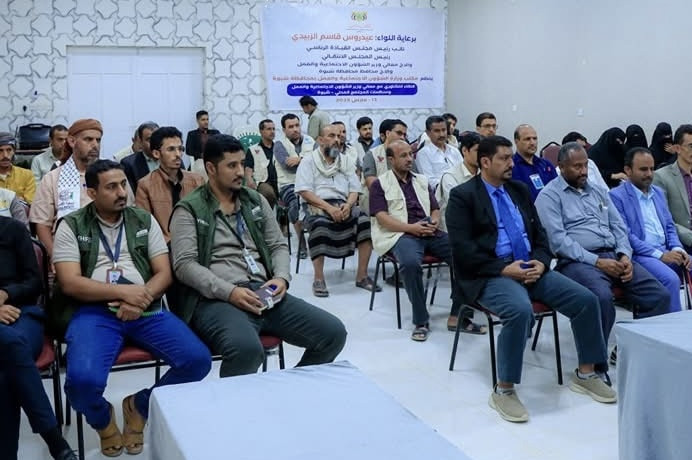 نظم مكتب وزارة الشؤون الاجتماعية والعمل بمحافظة شبوة، اليوم، لقاءً تشاوريًا جمع معالي وزير الشؤون الاجتماعية والعمل، الدكتور محمد سعيد الزعوري، بمنظمات المجتمع المدني في المحافظة، وذلك تحت رعاية نائب رئيس مجلس القيادة الرئاسي، رئيس المجلس الانتقالي الجنوبي، اللواء عيدروس الزبيدي، ومحافظ محافظة شبوة، عوض محمد بن الوزير.