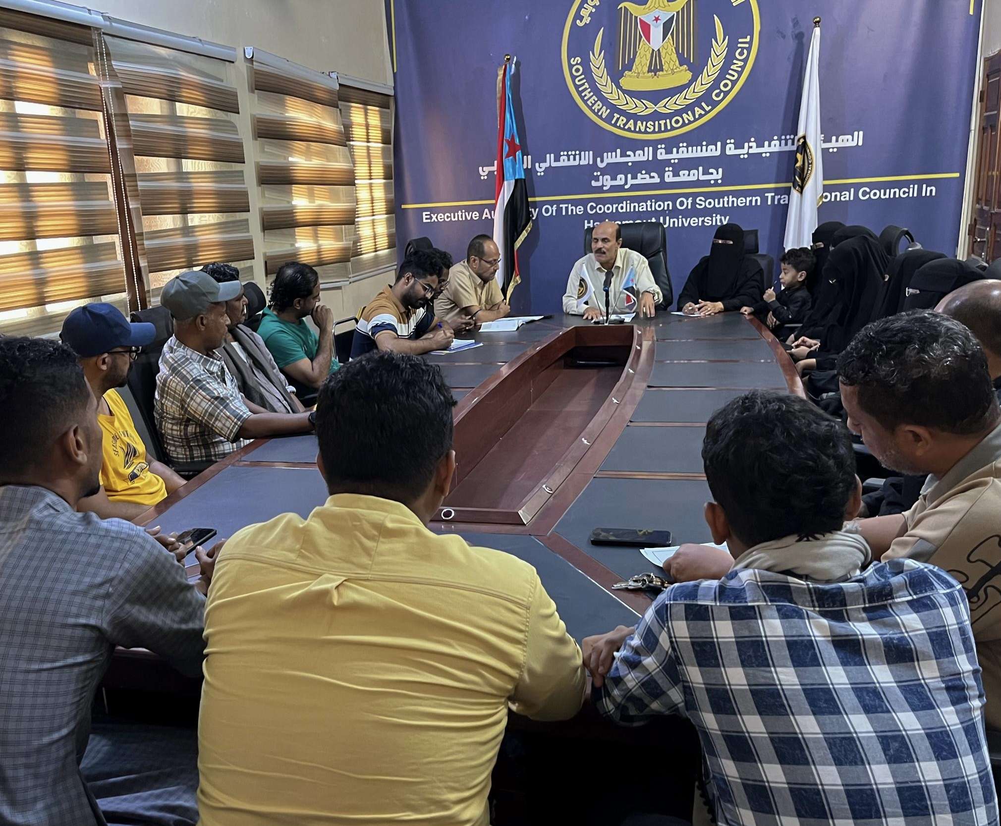 منسقية الانتقالي بجامعة حضرموت تعقد لقاءً مع الهيئات التنفيذية بمنسقيات كليات الجامعة