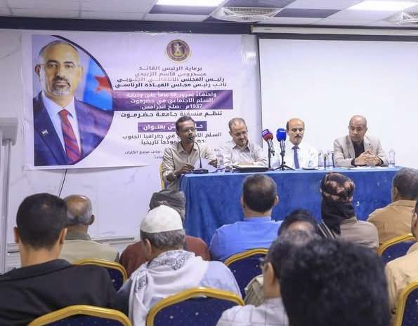 نظمت منسقيّة المجلس الانتقالي الجنوبي في جامعة حضرموت، اليوم الخميس، حلقة نقاشية بعنوان "السلم الاجتماعي في جغرافيا الجنوب (حضرموت نموذجاً)"، تزامنًا مع مرور 88 عاماً على توقيع وثيقة السلم الاجتماعي التاريخية المعروفة بـ"صلح إنجرامس".