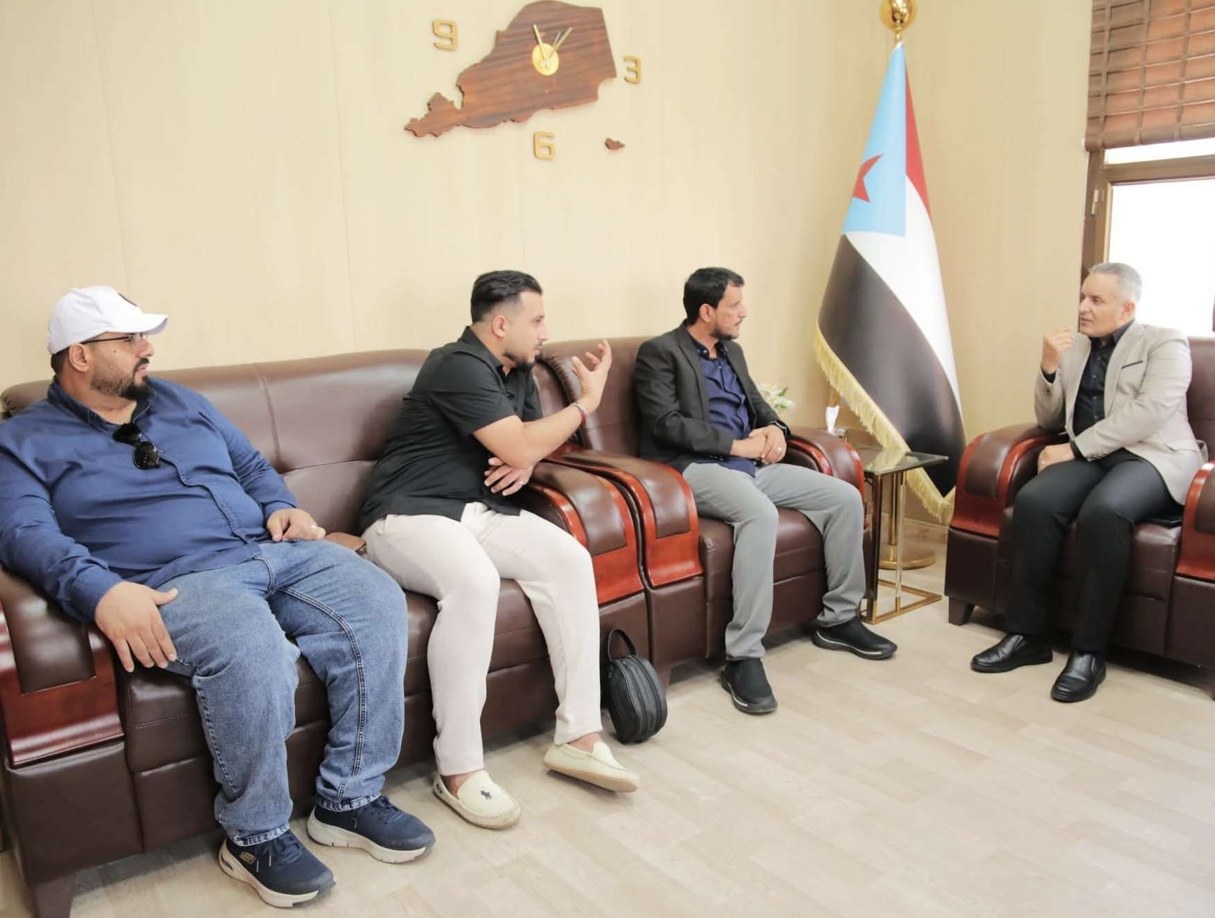 جاء ذلك خلال لقائه، اليوم، في مقر الهيئة الوطنية للإعلام الجنوبي بالعاصمة عدن، بالفنان التشكيلي نصر طه، رسام لوحات المعرض، وعضوي فريق "عدن بلس" المنظم للفعالية، سليمان الطحطوح وأحمد المنصوري.