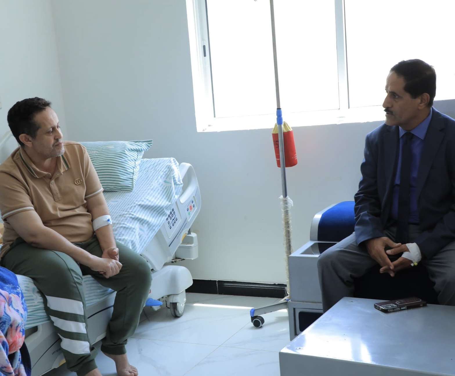 من جانبه عبّر رئيس تنفيذية انتقالي لحج، عن شكره وتقديره على هذه الزيارة والاطمئنان على حالته الصحية ومتابعته لها.