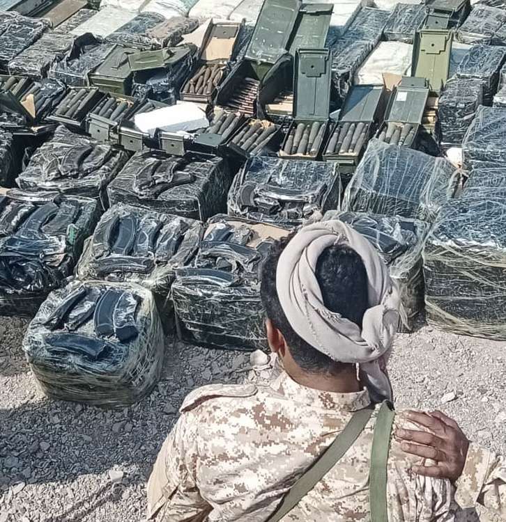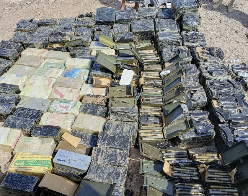 قوات الحملة الأمنية المشتركة تضبط شحنة ذخائر مهربة للحوثيين في رأس العارة، بالقرب من باب المندب