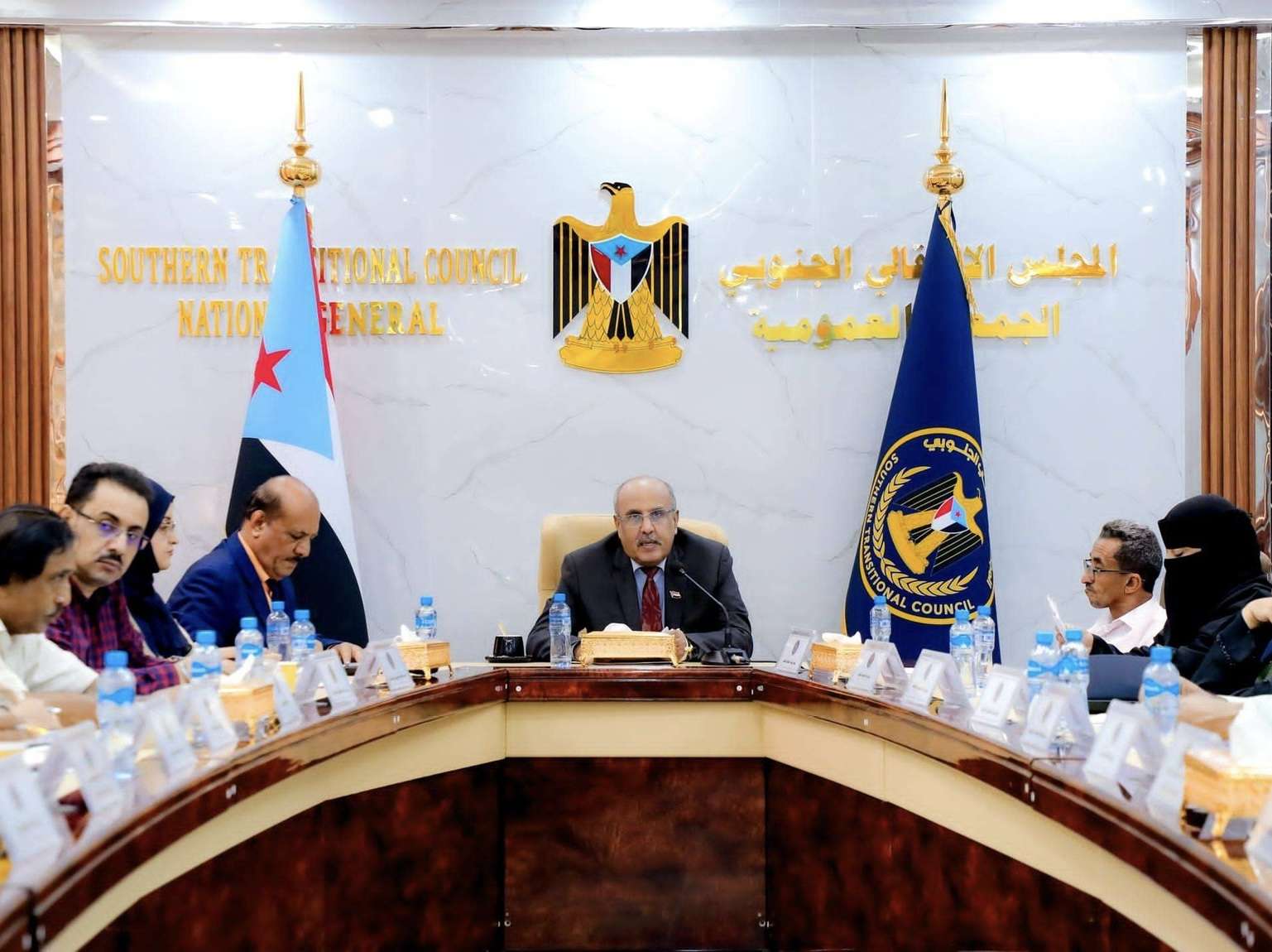 واستعرض الاجتماع مستجدات المشهد السياسي الجنوبي وتحدياته، والجهود الدبلوماسية التي يبذلها المجلس لتعزيز حضوره سياسيًا على الساحة الإقليمية والدولية، مؤكدين تمسك المجلس الانتقالي بعملية السلام والانخراط في العملية السياسية التي ستشترك فيها الأطراف الرئيسة كافة، وعلى رأسها المجلس الانتقالي، والتي ستتناول جميع القضايا، بما فيها قضية شعب الجنوب.