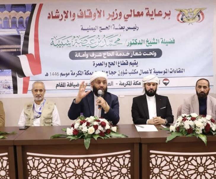 عقد وزير الأوقاف والإرشاد رئيس مكتب شؤون حجاج اليمن، الدكتور/ محمد بن عيضة شبيبة، مساء الخميس، في مقر البعثة اليمنية بمكة المكرمة، لقاءً موسعاً برؤساء وأعضاء اللجان الميدانية العاملة في موسم حج هذا العام ١٤٤٦هـ.
