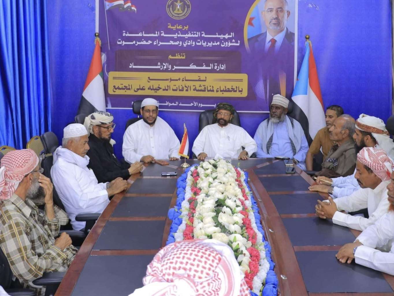 عقدت إدارة الفكر والإرشاد الديني بالهيئة التنفيذية المساعدة للمجلس الانتقالي الجنوبي لشؤون مديريات وادي وصحراء حضرموت، اليوم الأحد، لقاءً موسعًا بالخطباء وأئمة المساجد.