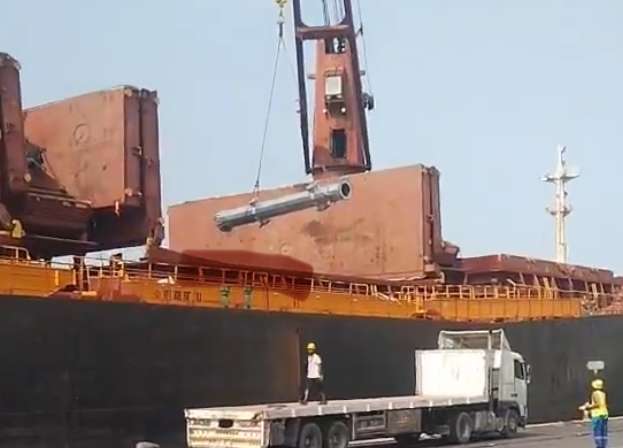 بدء تحميل أبراج نقل الطاقة لمحطة الطاقة الشمسية الإماراتية المخصصة لشبوة من ميناء المعلا