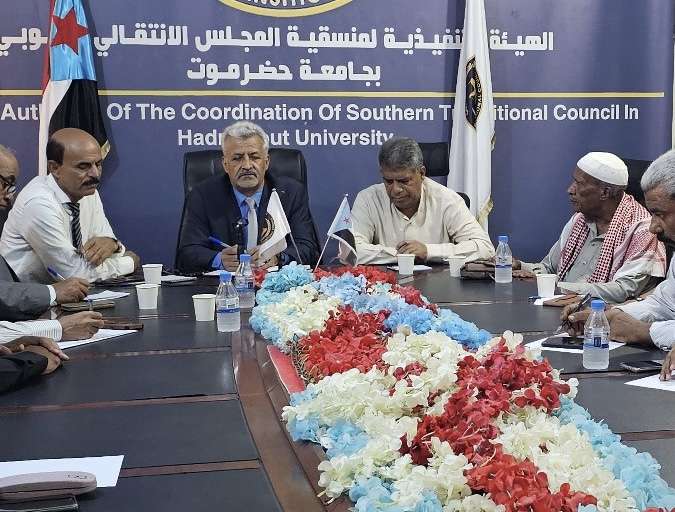 فريق التوجيه والرقابة الرئاسي يعقد لقاءً مع الهيئة التنفيذية لمنسقية الانتقالي بجامعة حضرموت